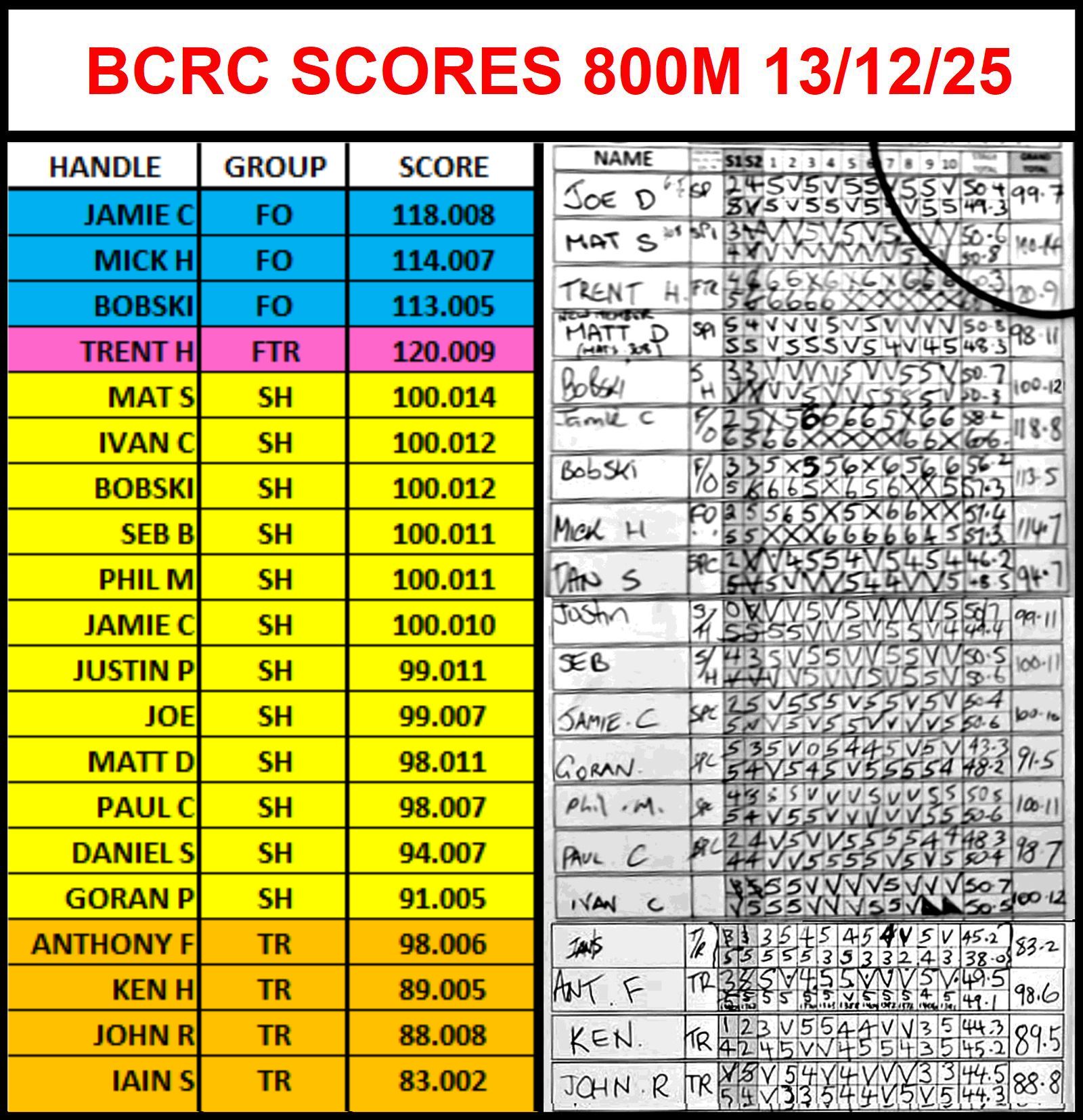 A great day at 800m today. Some mirage and wind gusts made it a challenge! Mat S again took the top spot.