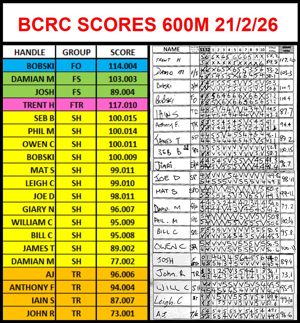 Today we shot at 300m due to wet mounds at 500m. Well done to those that shot well. Also well done to Anthony F with his 2nd place in the ISSF Competition in the morning. The weather held off all day, but it did give some a bit of a worry with thunder and lighting in the distance.